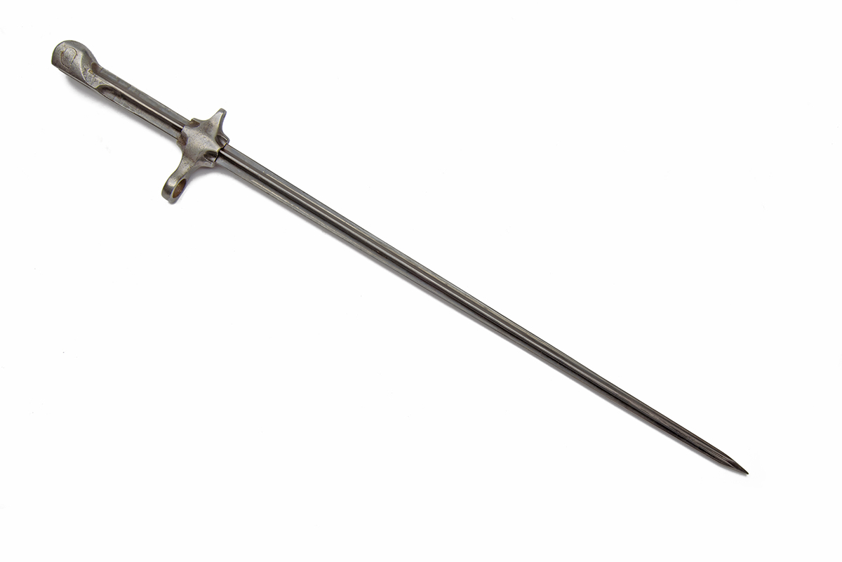 A SCARCE SWISS M1889/92 BICYCLE BAYONET FOR THE M1889 SCHMIDT-RUBIN, circa early 20th Century, all steel construction with 15 in. cruciform blade, cross-guard stamped '85323', some minor staining but otherwise good and clean, no scabbard, 20 in. overall