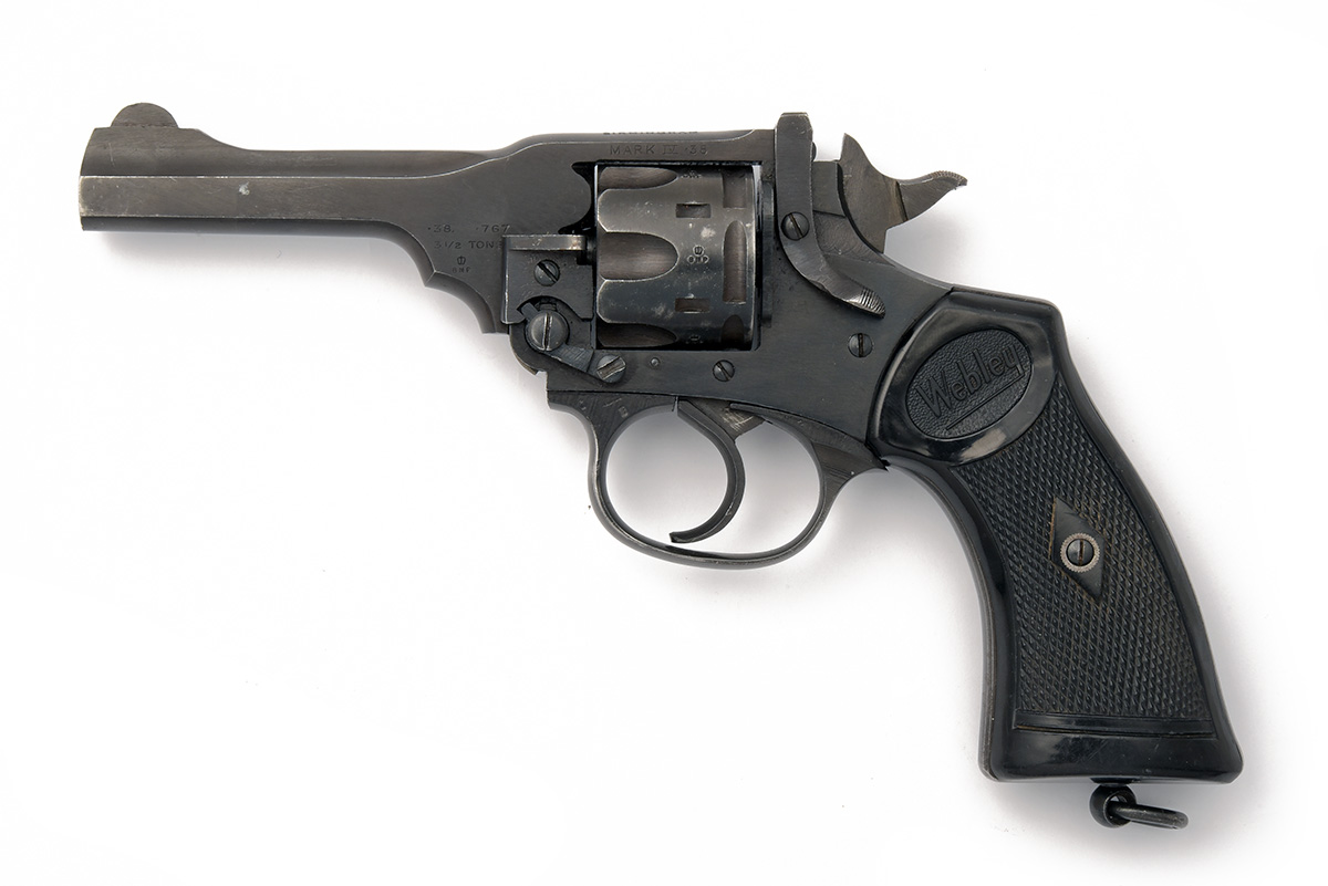 A .38 (S&W) WEBLEY & SCOTT MKIV REVOLVER, serial no. B28859, with 4in. barrel, break-open frame with auto-ejecting cylinder and chequered hard rubber grips