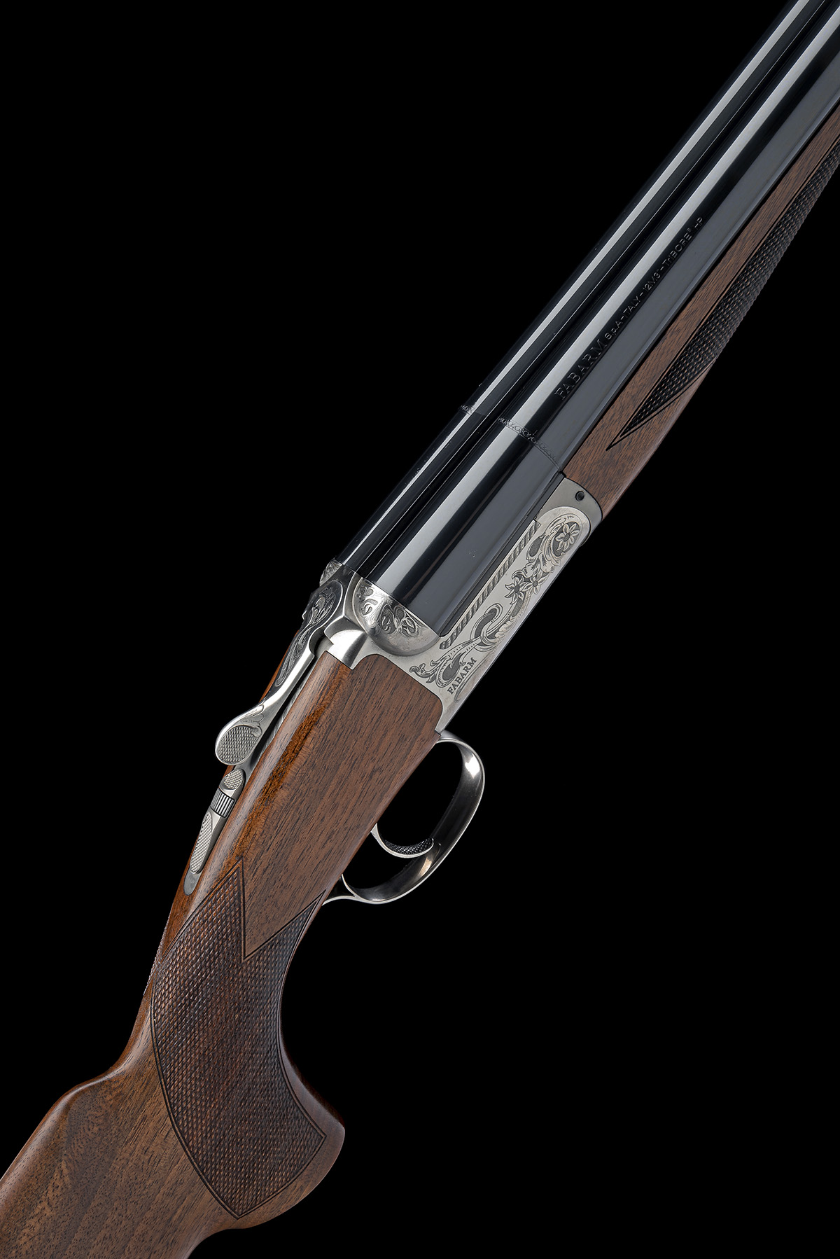 dated 2009, 28in. nitro barrels, 3in. chambers, multichokes (with spares), quadruple lump, manual safety with integral barrel selector switch, partially engraved with stylised floral and acanthus motifs, bright finish, 14 1/2in. pistolgrip stock including buttplate, weight 6lb. 15oz., in its makers universal case