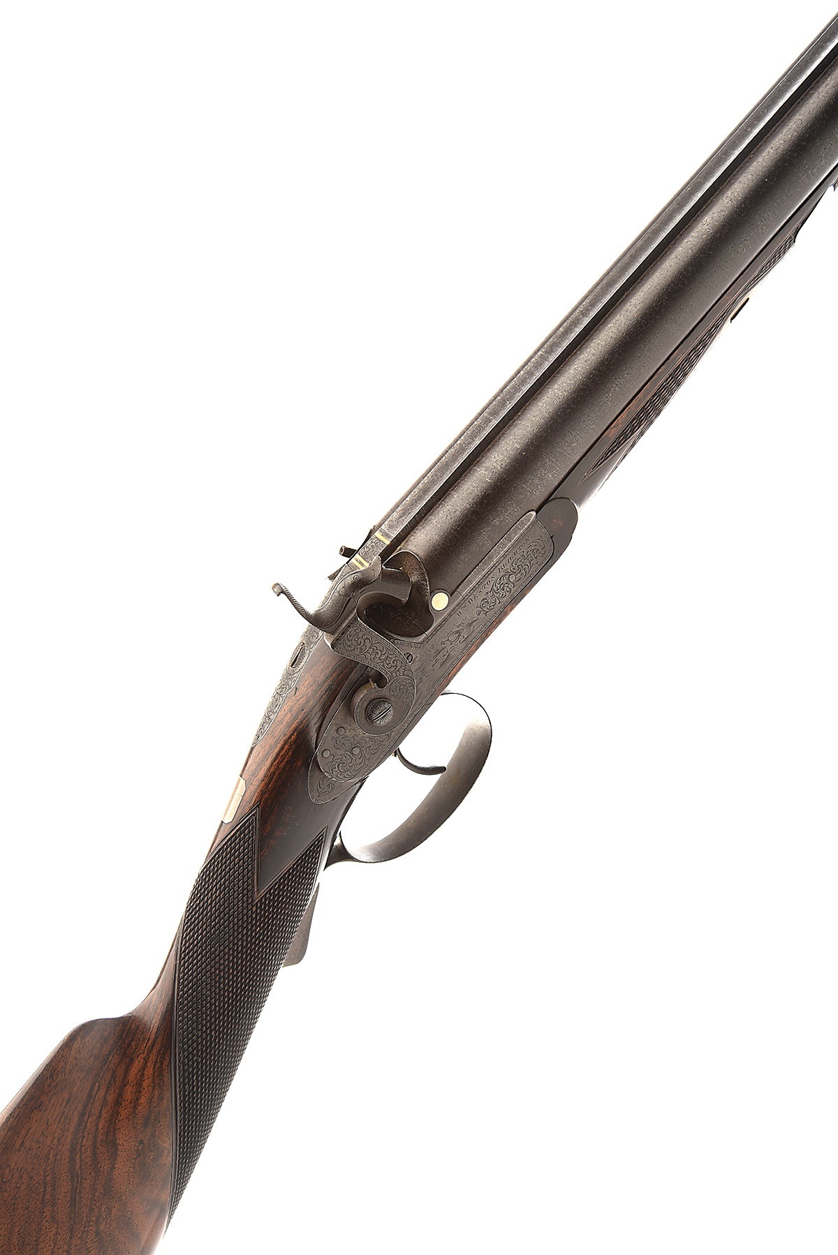 A 12-BORE PERCUSSION DOUBLE-BARRELLED SPORTING-GUN SIGNED WILLIAM WESTON, no visible serial number,