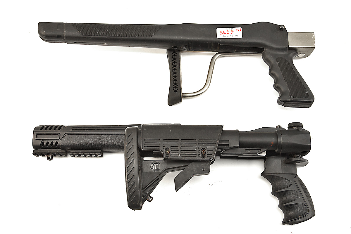 TWO SYNTHETIC 'RUGER' 10/22 FOLDING STOCKS, one tactical style. one wire frame folding stock in black 2