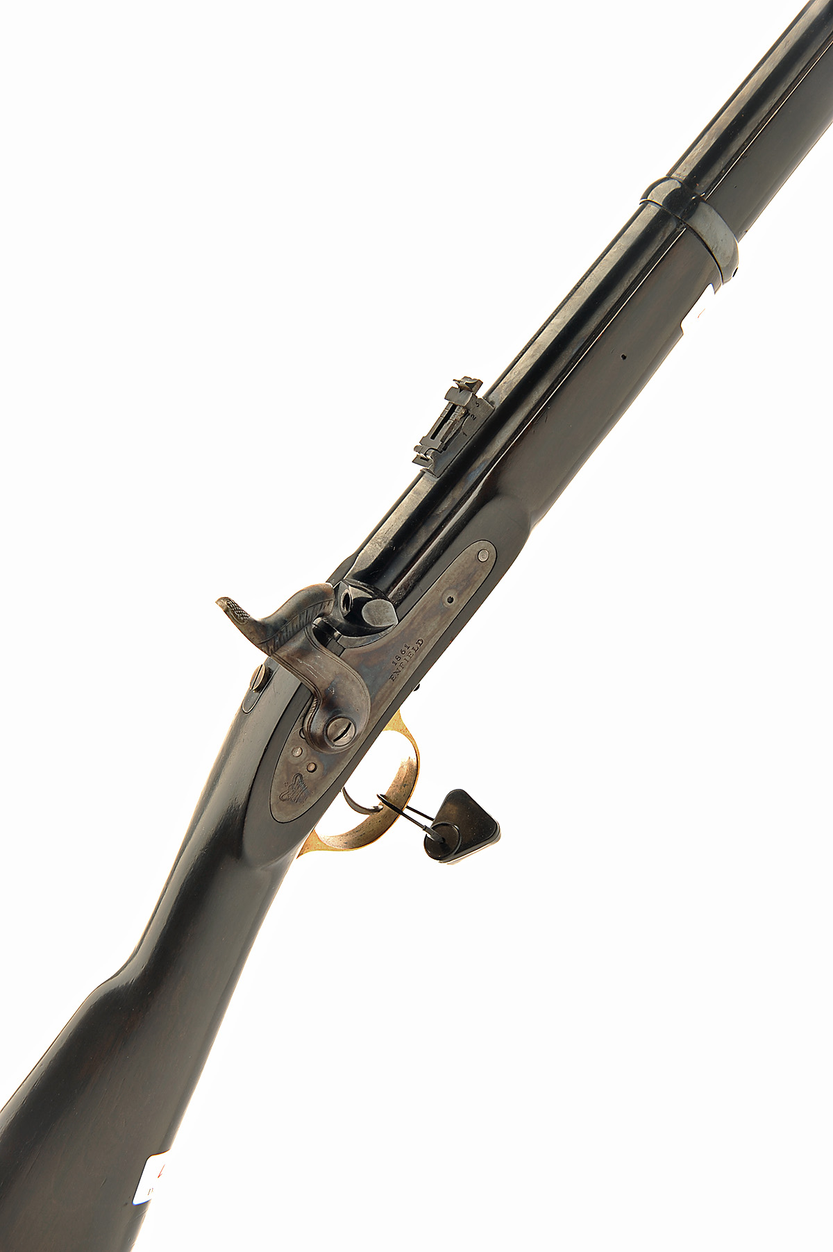 A REPRODUCTION .577 PERCUSSION CARBINE SIGNED PARKER-HALE, MODEL '1861 ENFIELD', serial no. 5286, with blued and sighted 24in. barrel (missing nipple), colour hardened lock and walnut full-stock with brass and iron furniture
