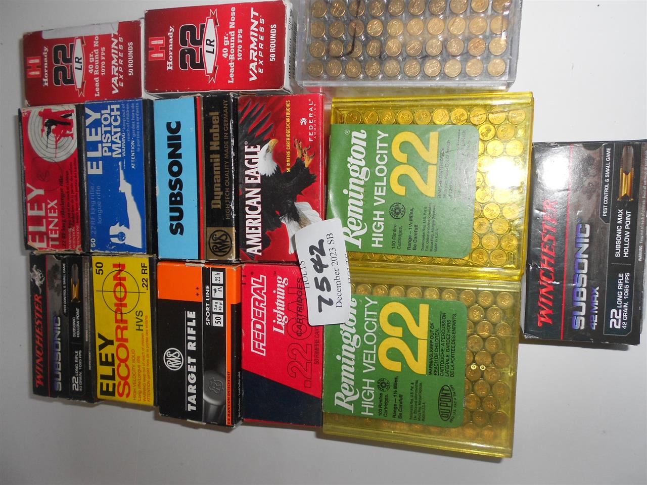800 ROUNDS OF MIXED .22LR AMMUNITION, VARIOUS BRANDS SUBSONIC AND HIGH VELOCITY, Please be advised that cartridges/ammunition, primers, primed cases, blanks and percussion caps CANNOT BE SENT ANYWHERE in the UK or EXPORTED OVERSEAS by POST or CARRIER. Due to this NATIONAL and INTERNATIONAL CARRIER rule, we ask you to arrange with our shipping department a collection within 30 days of the sale date. A collection can be arranged for you to COLLECT at one of our regional valuation days on mainland UK, or, you would be most welcome to COLLECT from our offices at PE31 6HA in Norfolk. If payment and collection is not arranged within 30 days of the sale date, that will indicate that the items are not required and they will be offered in our next sale.