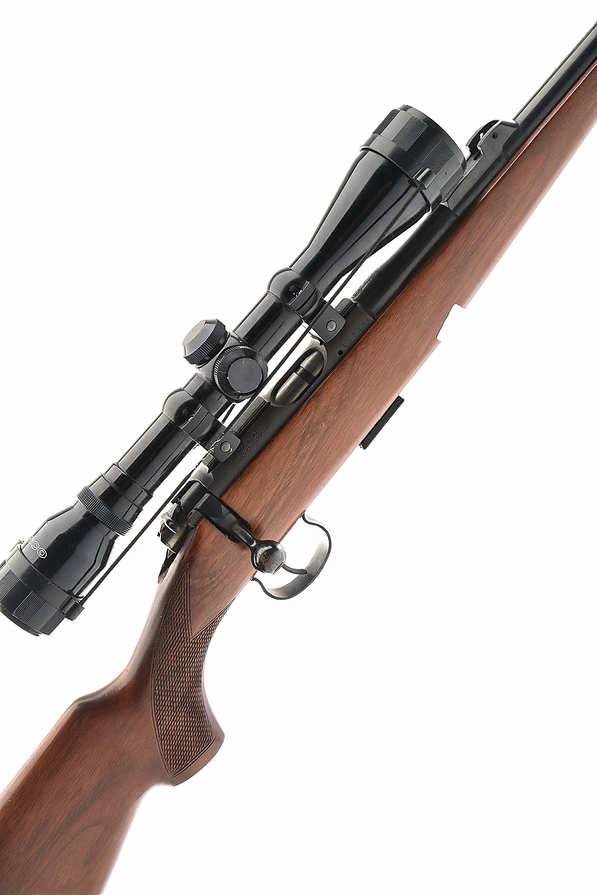 BRNO .22 L.R. 'MODEL 2' BOLT-MAGAZINE SPORTING RIFLE, serial no. 183386, circa 1972, 24 3/4in. nitro barrel, hooded ramp-mounted blade fore-sight, rear-sight missing, fitted with a Tasco 4x40 telescopic sight, manual safety, detachable magazine, pistolgrip stock