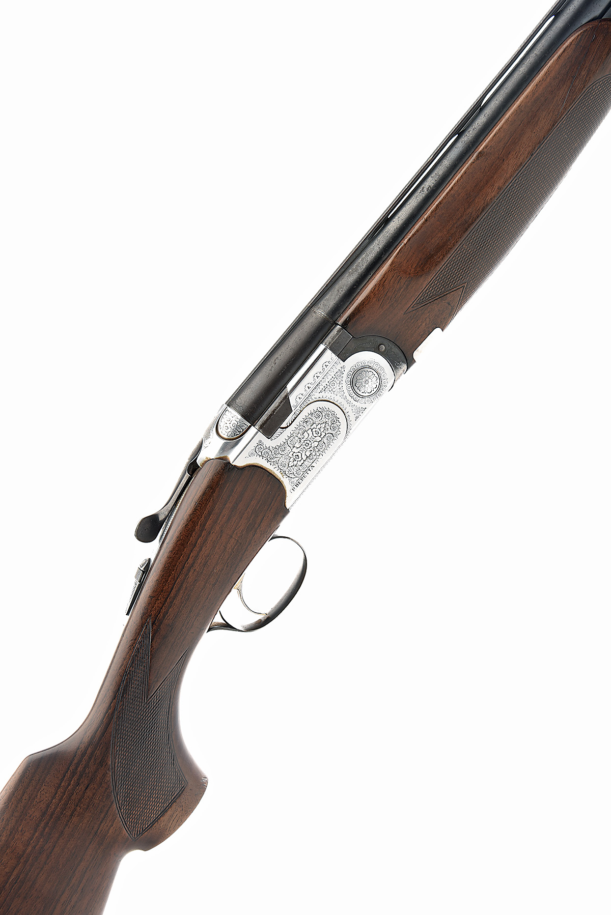 P. BERETTA 12-BORE 'MOD. S686 SPECIAL' SINGLE-TRIGGER OVER AND UNDER EJECTOR, serial no. E55421B, dated 1986, 28in. nitro barrels with 6mm ventilated matt top-rib, 2 3/4in. chambers, bored approx. 1/4 and 1/2 choke, hold-open toplever, automatic safety with integral barrel selector switch, gold-washed single trigger, bouquet and scroll engraving, matt silver finish, 14in. pistolgrip stock including buttplate, weight 6lb. 14oz.