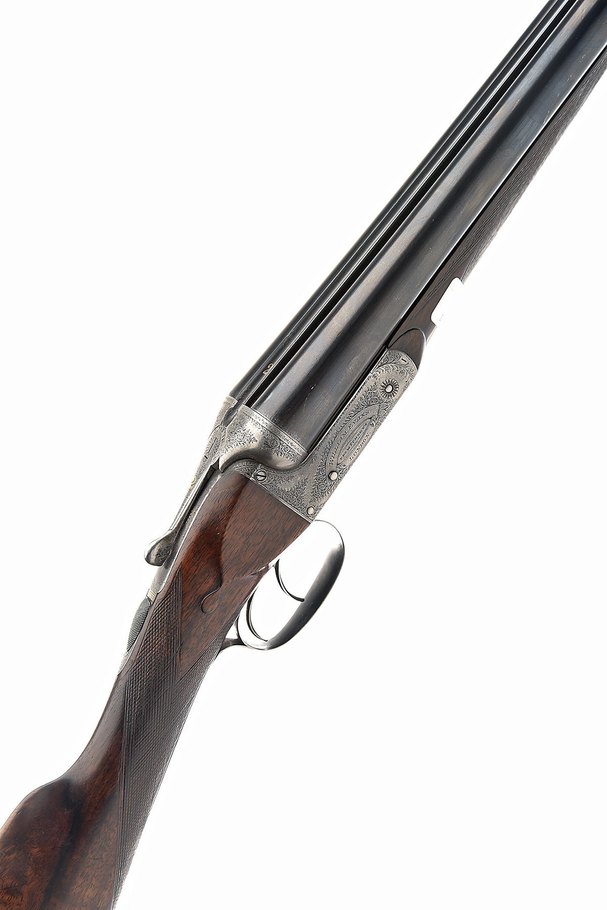 WILLIAM EVANS (FROM PURDEYS) 12-BORE BOXLOCK EJECTOR, serial no. 3126, circa 1895, 28in. nitro reproved barrels (pitted, right wall at 18), rib engraved 'WILLIAM EVANS. FROM PURDEYS. 63 PALL MALL. ST. JAMES'S. LONDON.' and gold-inlaid '2' at the breech end, 2 1/2in. chambers, bored approx. imp. cyl. and 3/4 choke, treble-grip action, automatic safety with gold-inlaid 'SAFE' detail, intercepting sears, fine border and acanthus scroll engraving, 14 1/4in. figured stock including 5/8in. wooden extension, weight 6lb. 7oz.