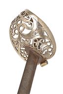 A PATTERN 1821 WILLIAM IV HEAVY CAVALRY OFFICER'S SWORD, dates 1830-1837, with 36 in. slightly curved single-edged pipe-backed steel blade with etched panel of a Crowned WIVR cypher, polished steel guard with scrolling foliage design and shagreen grip bound with twist-wire, blade with some rusting, etching faint, some wear to the grip and rusting to the hilt, no scabbard, 42 in. overall