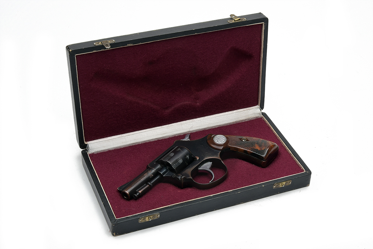 A BOXED .22 (L/R) POCKET-REVOLVER BY ROSSI, serial no. 45750, with 2in. copper? barrel and frame, fluted steel swing-out cylinder and chequered plastic grips, in its makers hinged-top presentation case