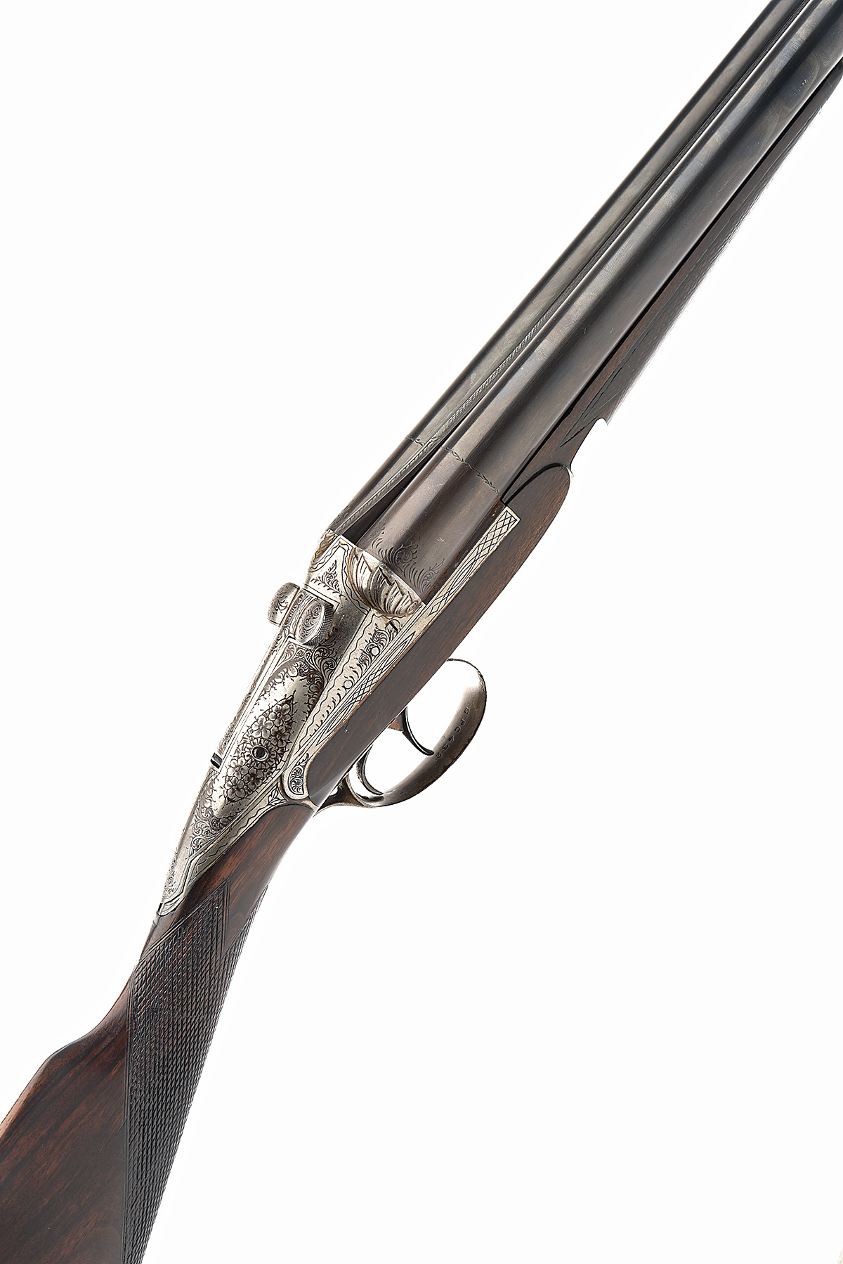 DARNE 12-BORE 'R15' SLIDING-BREECH AUTOMATIC EJECTOR, serial no. SPC432, circa 1932, 26 3/4in. nitro barrels with sunken matted top-rib and no under rib, scroll detailing at the breech-ends, 2 3/4in. chambers, bored approx. 1/4 and 1/2 choke, sliding breech with barrel bolt, obturator discs, manual safety lever, bouquet and scroll engraving, bright finish overall, 14 1/2in. figured stock with trademark buttplate, fore-end with horn finial, weight 6lb. 1oz.