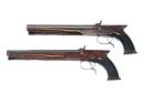 A CASED PAIR OF 40-BORE PERCUSSION SAW-HANDLED DUELLING or TARGET PISTOLS BY H.W. MORTIMER & SON, LONDON, serial numbered 1241,