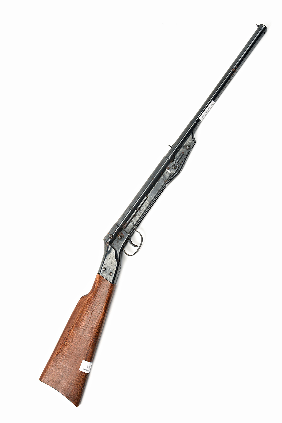 with a 12in. barrel, open sights with a beech half buttstock