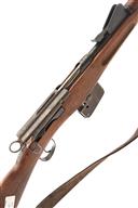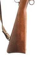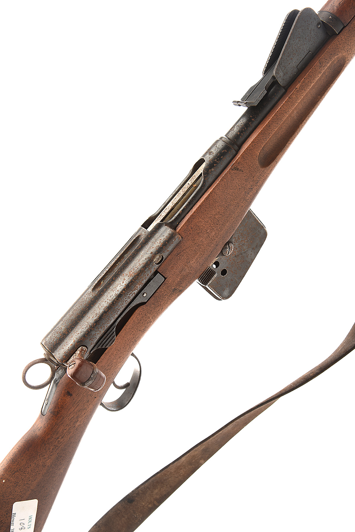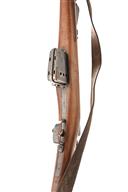 A 7.5X53.5 (SWISS) STRAIGHT PULL SCHMIDT-RUBIN BOLT ACTION SERVICE RIFLE MODEL 1889, serial no. 63975, with 31 1/4in. barrel, block and blade front-sight, tangent rear-sight, fluted receiver and straight pull bolt, box magazine, iron mounted full walnut stock, complete with original fore-sight cover and leather sling. The rifle is dirty overall with good stock, barrel and action with much original blue with some rusting.