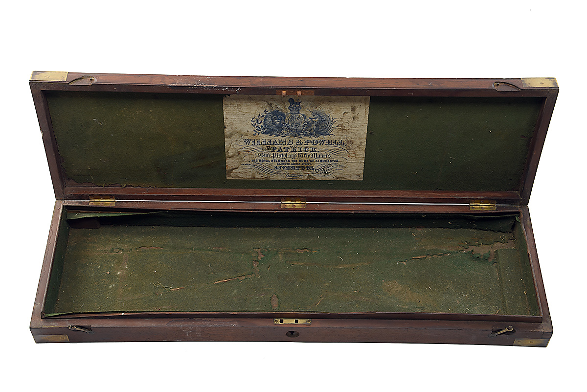 A WILLIAMS & POWELL BRASS-CORNERED MAHOGANY SINGLE GUNCASE,