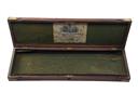 A WILLIAMS & POWELL BRASS-CORNERED MAHOGANY SINGLE GUNCASE, internal boxing missing, the interior lined with green baize internal measurement 30 1/2in. x 7 3/4in., the lid exterior with a brass central flush-fitting carry handle