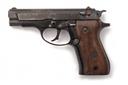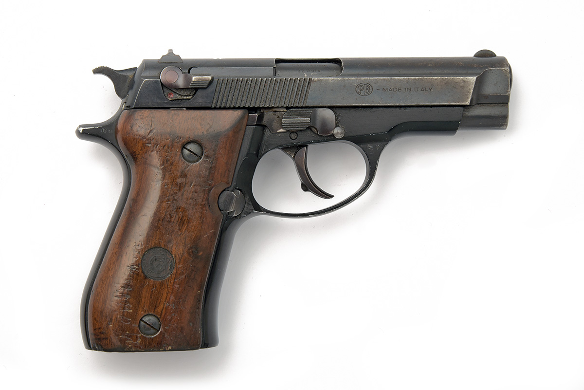A .32 (ACP) BROWNING SEMI-AUTOMATIC PISTOL, serial no. 425RP52281 made by Beretta and sold under license, with 3 3/4in. barrel, blued slide, anodised alloy frame and smooth wood grips, missing magazine, finish worn