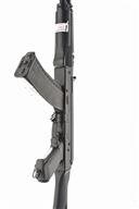 A .177 CO2-POWERED REPEATING AIR-RIFLE, SIGNED IZHMASH 'MODEL AK47', serial no. 00122067, 18in. barrel including 'flash hider', raised post fore-sight, adjustable open rear sight, manual safety, dummy magazine, synthetic pistolgrip stock