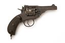 dated for 1906, with 4in. barrel, integral fore-sight, break-open frame with automatic ejecting fluted cylinder, double action mechanism, chequered hard rubber birdshead grips, lanyard ring at heel, South African issue markings to back-strap, strong amount of finish