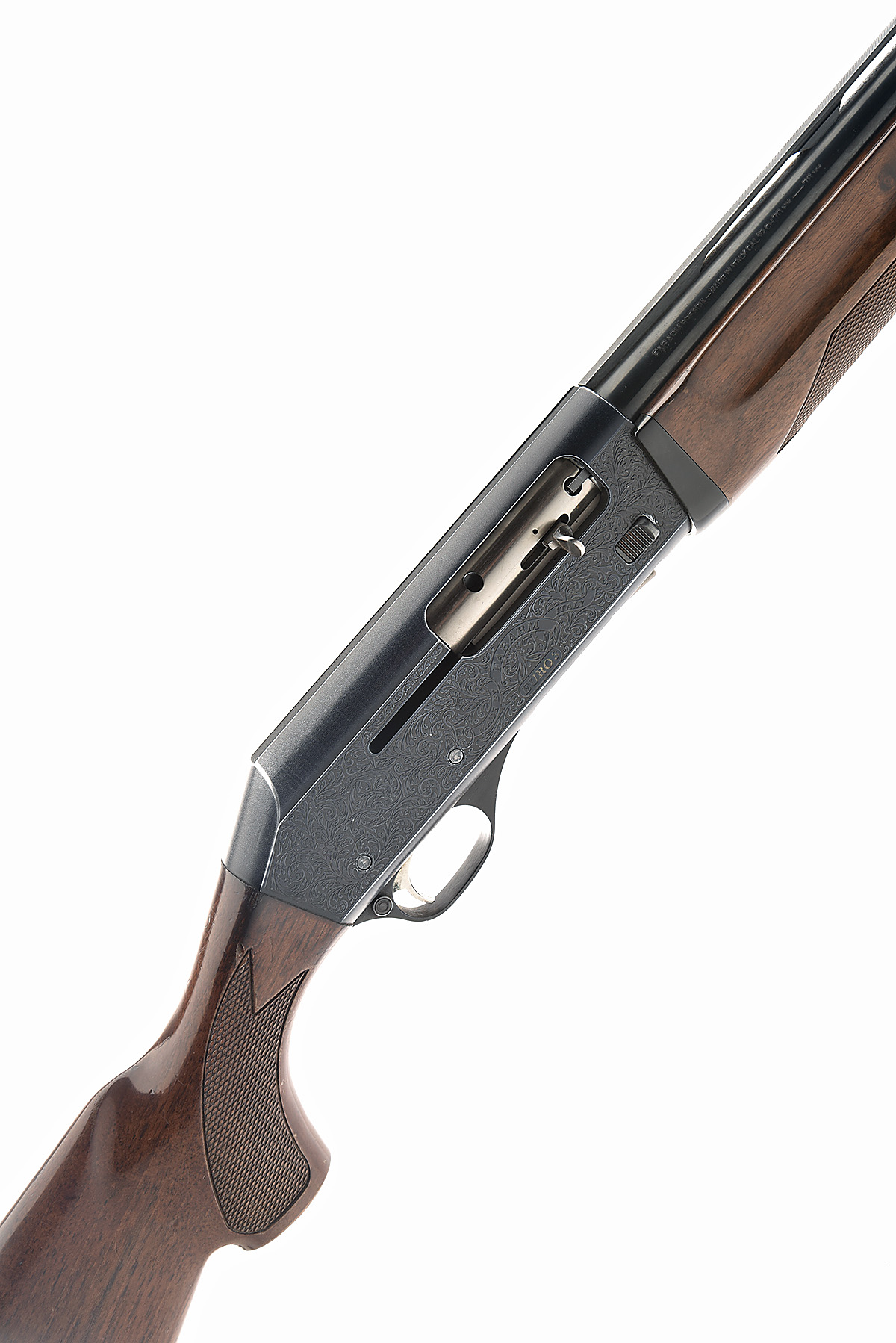 FABARM 12-BORE (3IN.) 'EURO 3' SEMI-AUTO SHOTGUN, serial no. 372280, for 1993, restricted magazine, 28in. nitro barrel with 6mm ventilated matt rib, 3in. chamber, multichoke (no spares), manual push-button safety, magazine cut-off switch, gold-washed trigger, blacked action, acanthus scroll engraving, 14 1/4in. pistolgrip stock including buttplate, sling swivels