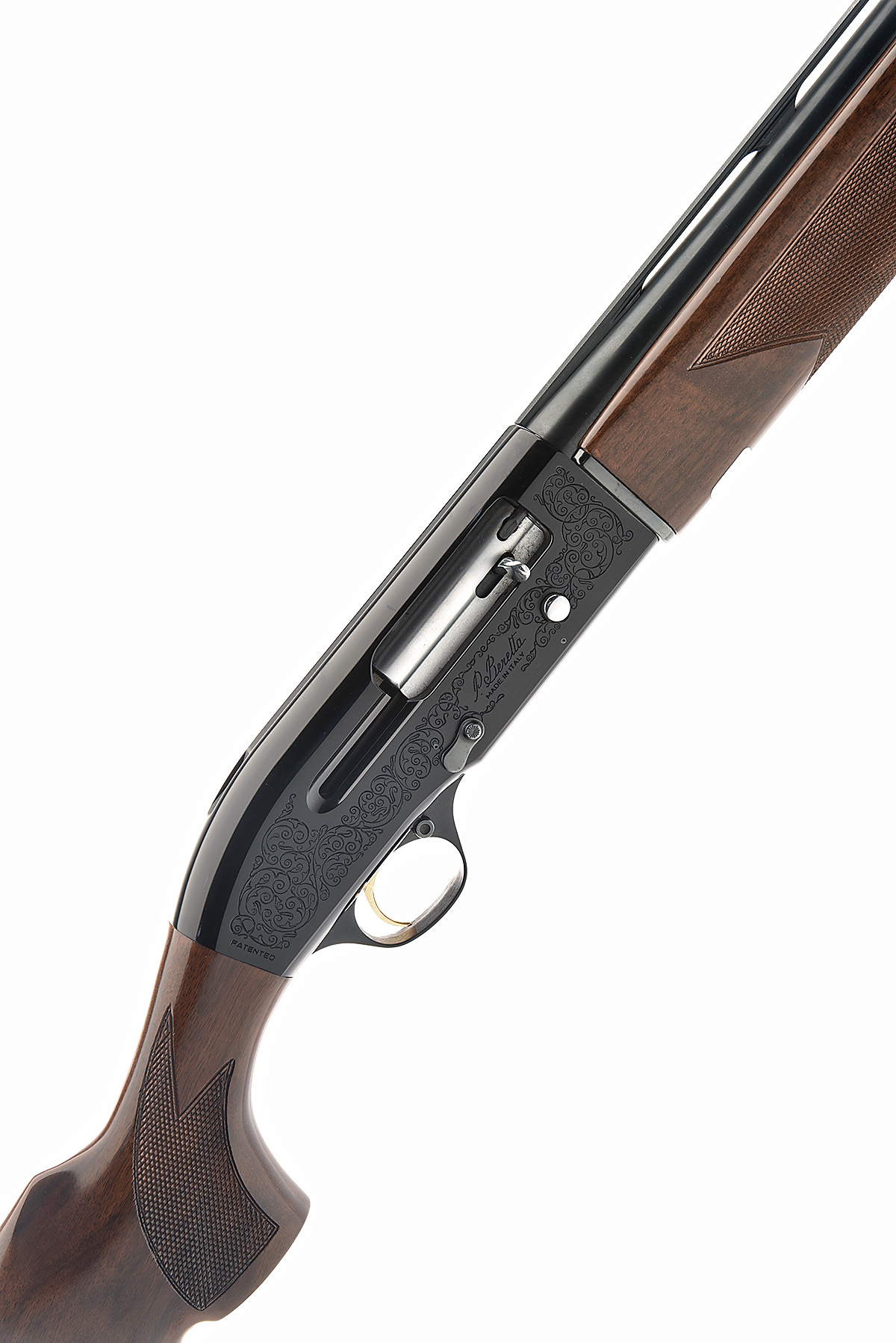 P. BERETTA 12-BORE 'MOD. A. 302' SEMI-AUTO SHOTGUN, serial no. G10821E, for 1984, restricted magazine, 26 1/2in. nitro barrel with 7mm ventilated matt rib, 2 3/4in. chamber, multichoke (no spares), manual push-button safety, magazine cut-off switch, gold-washed trigger, acanthus scroll engraving, blacked finish, 14in. pistolgrip stock including buttplate, weight 7lb. 2oz.