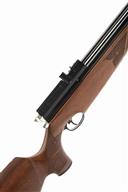 A .22 PRE-CHARGED PNEUMATIC AIR-RIFLE, SIGNED AIR ARMS 'MODEL S410 CARBINE', serial no. 085129, 22 1/4in. unsighted nitro barrel including sound moderator, receiver with integral sight rail, bolt-action, no magazine, blued finish, chequered pistolgrip halfstock, 14 1/4in. pull including ventilated rubber recoil pad together with a footpump