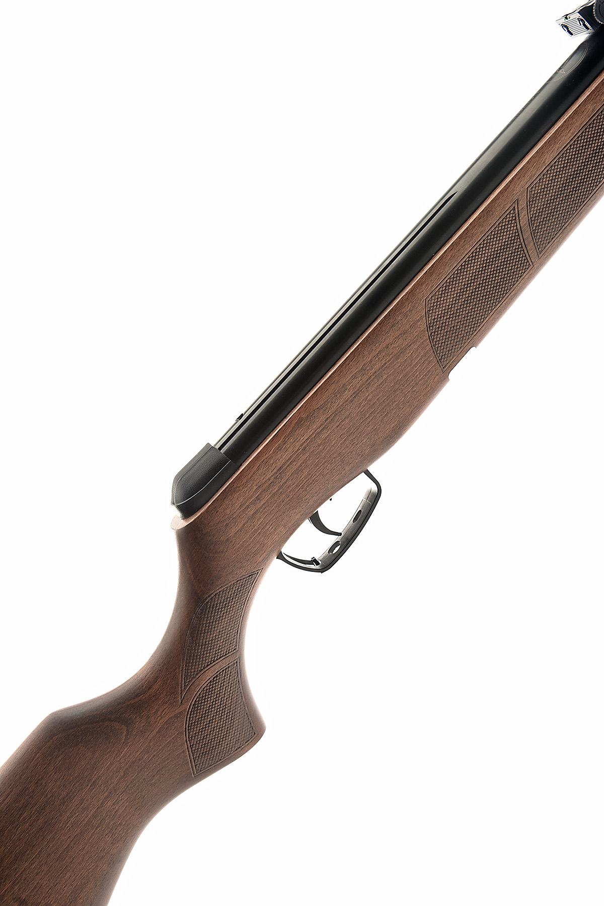 A BOXED .22 BREAK-BARREL AIR-RIFLE, SIGNED BSA 'MODEL METEOR EVO', serial no. WE-143664-21, 18 1/2in. barrel, ramped high-visibility bead fore-sight, adjustable open rear sight, air chamber with integral sight rail, manual safety, blued finish, chequered pistolgrip halfstock, 13 3/4in. pull including rubber recoil pad, the whole appearing unused in its makers carton