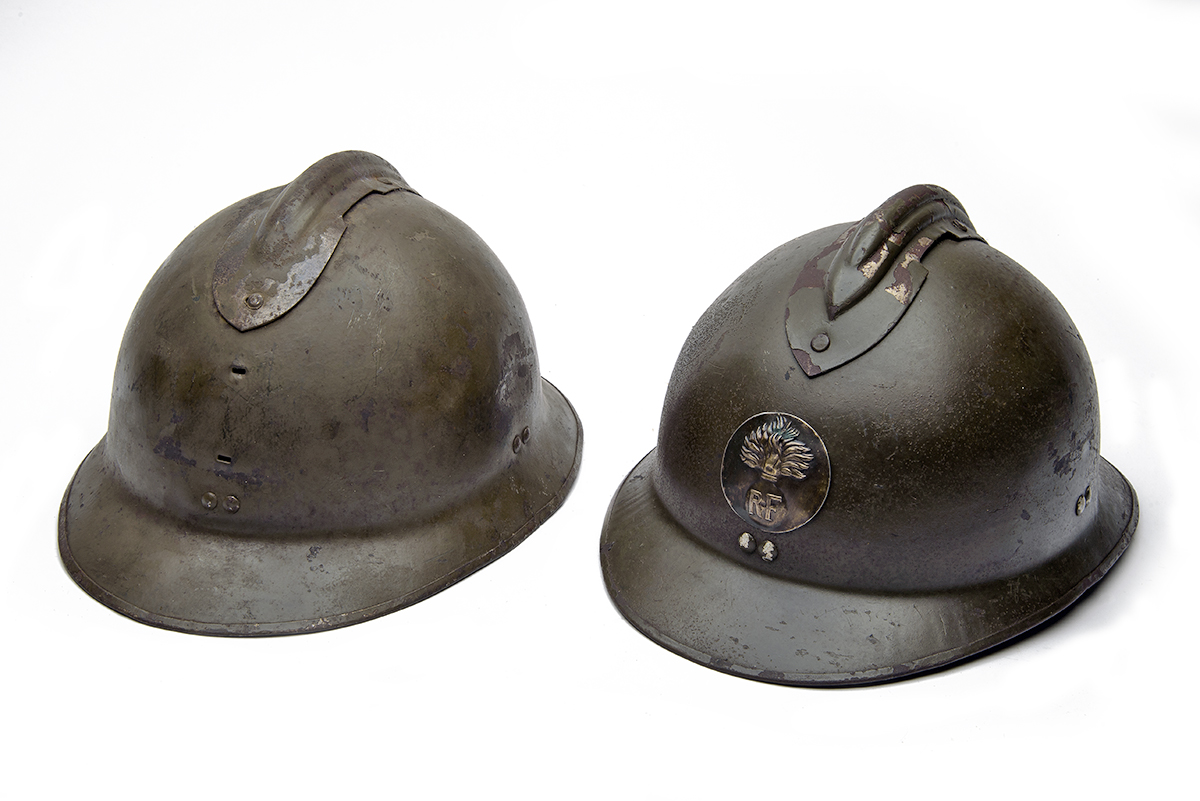 A PAIR OF FRENCH ARMY WORLD WAR II MODEL 1926 Adrian HELMETS,