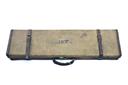 A CANVAS AND LEATHER SINGLE GUNCASE, fitted for 29in. barrels, the interior lined with green baize, brass lock (key missing),