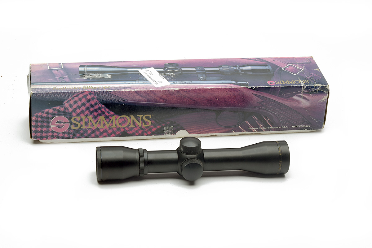 A SIMMONS SHOTGUN TELESCOPIC SCOPE, 'A new boxed and unused simmons shotgun 4x32 shotgun scope' 1