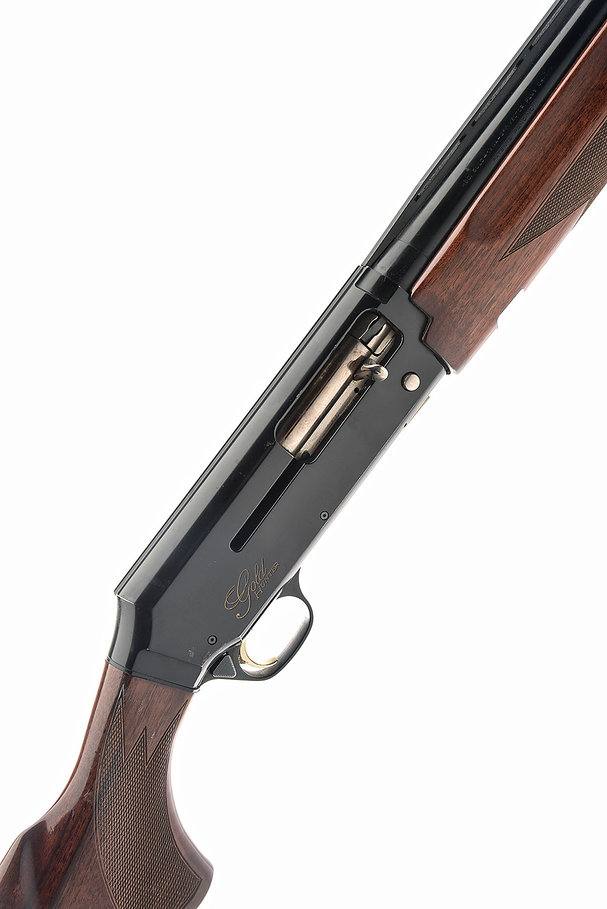BROWNING ARMS CO. 12-BORE 'GOLD HUNTER' SEMI-AUTO SHOTGUN, serial no. KS1NP02306, for 1998, restricted magazine, 30in. nitro barrel with 6mm raised ventilated matt rib, 2 3/4in. chamber, multichoke (no spares), manual push-button safety, magazine cut-off switch, gold-washed trigger, plain blacked action, 14 1/2in. pistolgrip stock including trademark buttplate