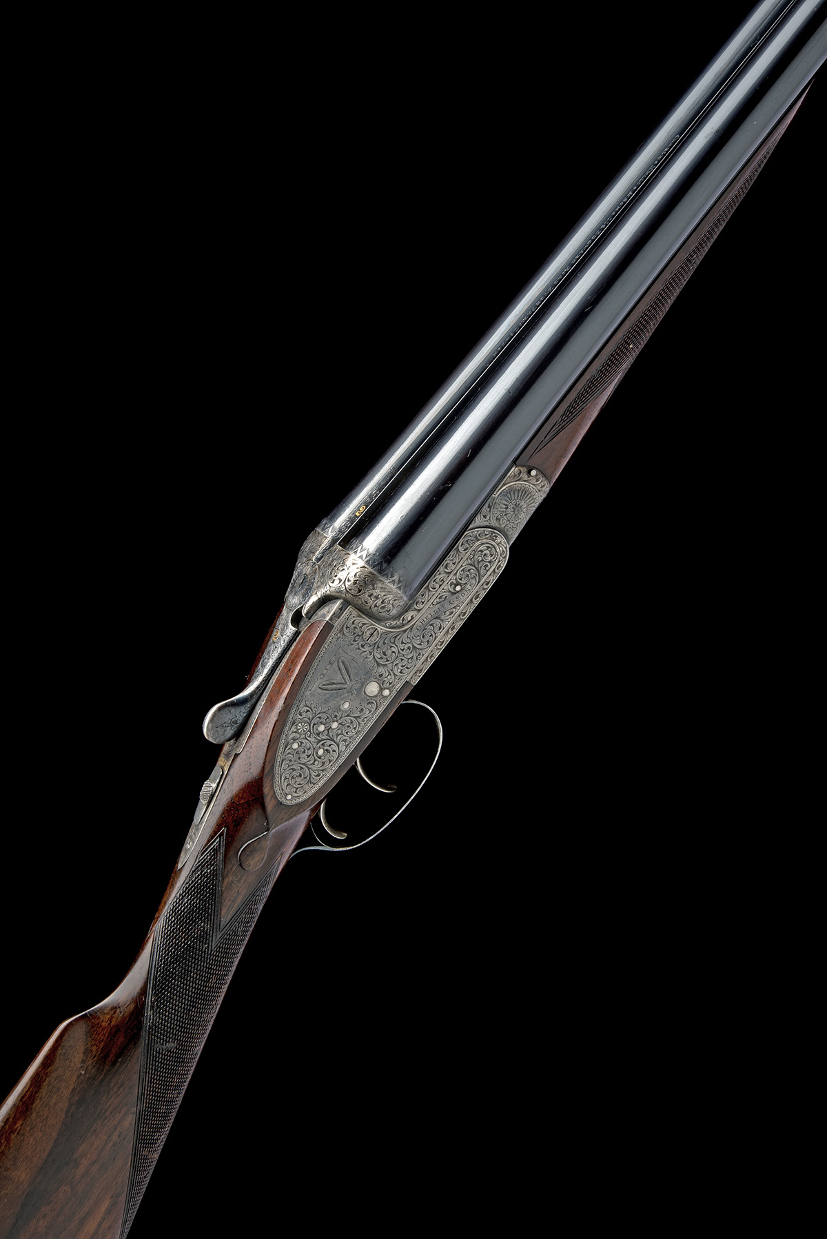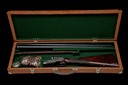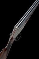 for 1929-30, 26in. nitro reproved barrels (in 2025), the rib engraved 'CHARLES HELLIS & SONS. 119 EDGWARE ROAD. HYDE PARK. LONDON. W.' the breech end gold-inlaid '2' surrounded by acanthus scroll detailing, 2 3/4in. chambers, bored approx. 1/2 and full choke, treble-grip action, toplever gold-inlaid '2', automatic replacement safety with gold-inlaid 'SAFE' detail, beaded border and bold scroll engraving, the lockplates and triggerguard with a crossed feather motif, the makers name in a scrolling banner, retaining very slight traces of original colour-hardening and finish, 14in. stock, fore-end finial gold-inlaid '2', weight 6lb., in a case