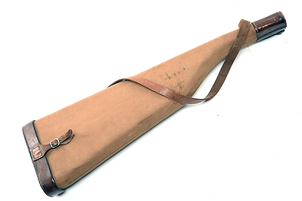 A CANVAS AND LEATHER LEG-OF-MUTTON SINGLE GUNCASE,