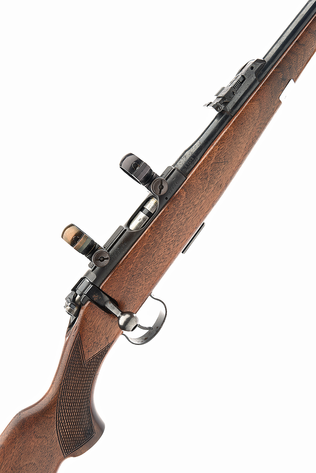 BRNO .22 L.R. 'MODEL 2' BOLT-MAGAZINE SPORTING RIFLE, serial no. 33481, circa 1957, 24 1/2in. nitro barrel, ramp-mounted blade fore-sight, tangent rear-sight, fitted with scope rings, manual safety, detachable magazine, figured pistolgrip stock, leather sling