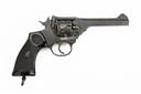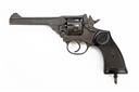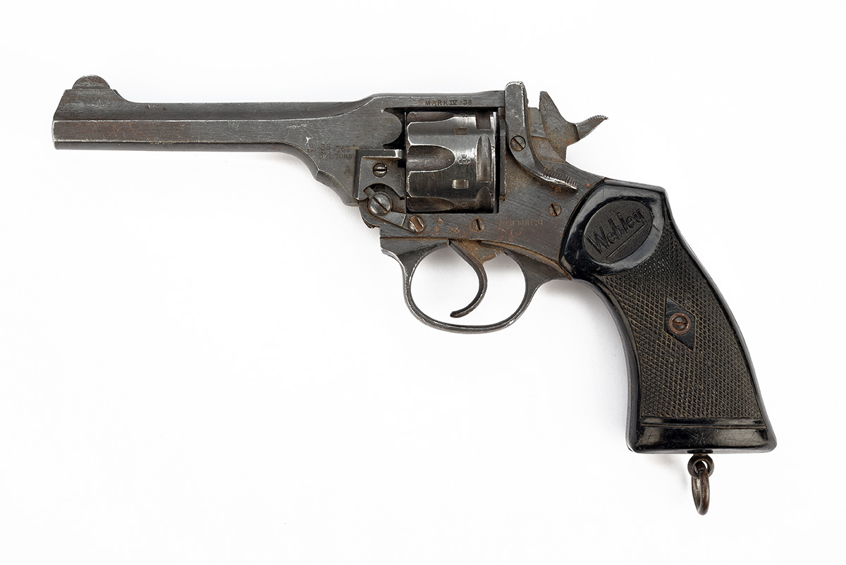 ** A .38 (200) WEBLEY & SCOTT 'WAR FINISH' MKIV REVOLVER, serial no. 147399, with 5in. barrel, break-open frame with auto-ejecting fluted cylinder and black chequered hard rubber grips, much military finish