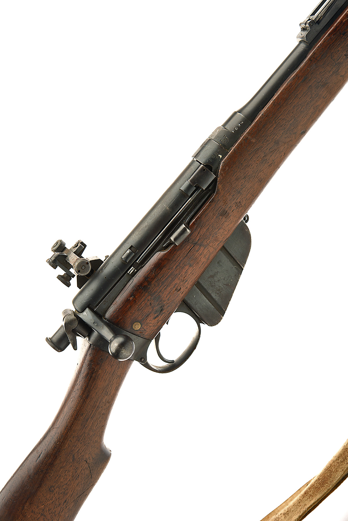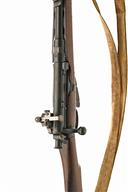 * L.S.A. Co. LTD. .303 'L.E. I' BOLT-MAGAZINE SERVICE RIFLE, serial no. 6594, dated 1897, 30 1/8in. nitro barrel, ramp-mounted fore-sight, folding ladder rea-sight, fitted with a Parker-Hale model 6 rear aperture-sight, bolt dust-cover, manual bolt magazine, magazine cut-off, detachable box magazine, full length stock butt-plate with trap door, leather sling