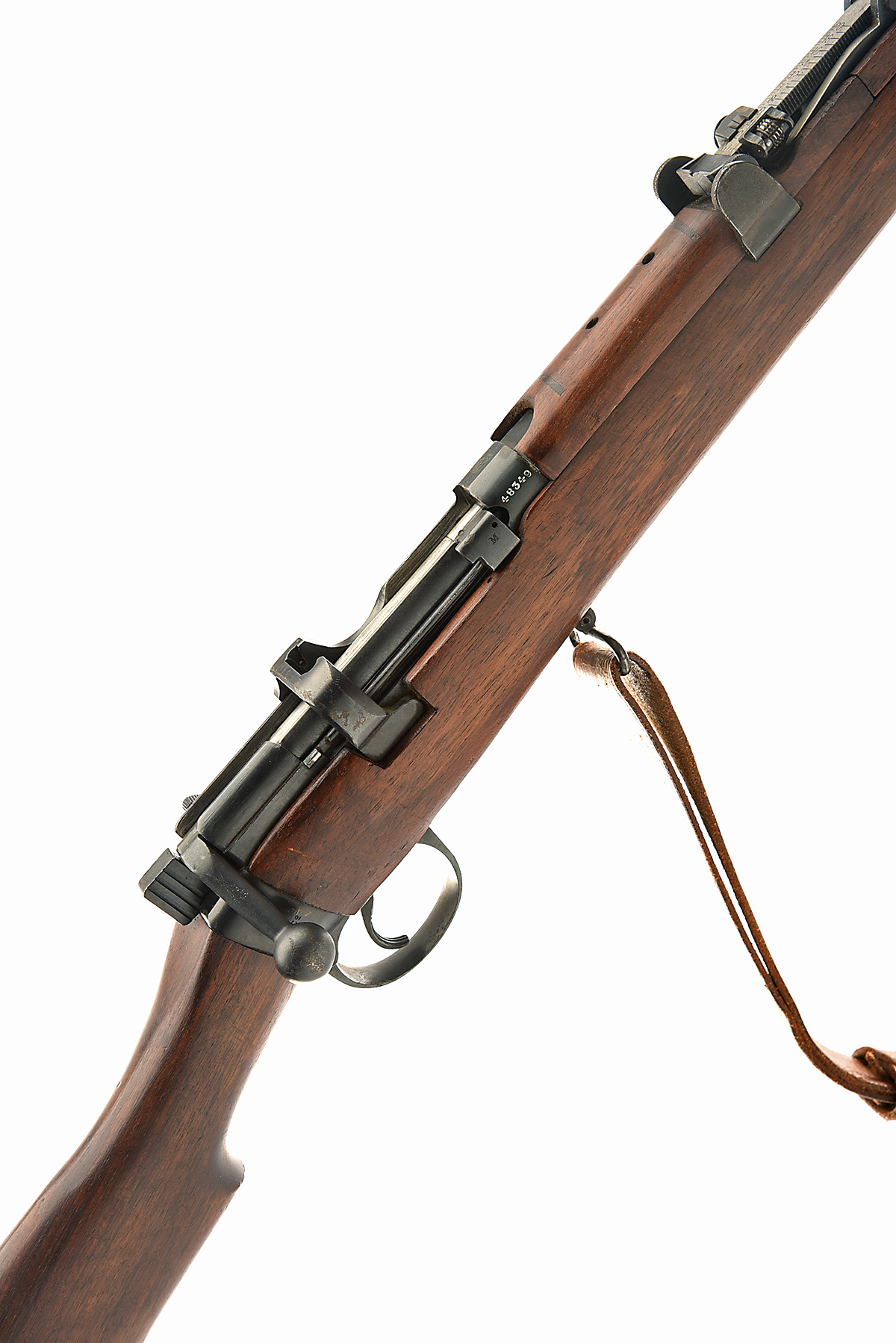 * B.S.A. CO. .303 'S.M.L.E.' BOLT-MAGAZINE SERVICE RIFLE, serial no. 48349, circa 1914, 25 1/4in. nitro barrel, protected ramp-mounted fore-sight, tangent rear-sight, manual safety, detachable magazine missing, full-length stock with trap door, leather sling