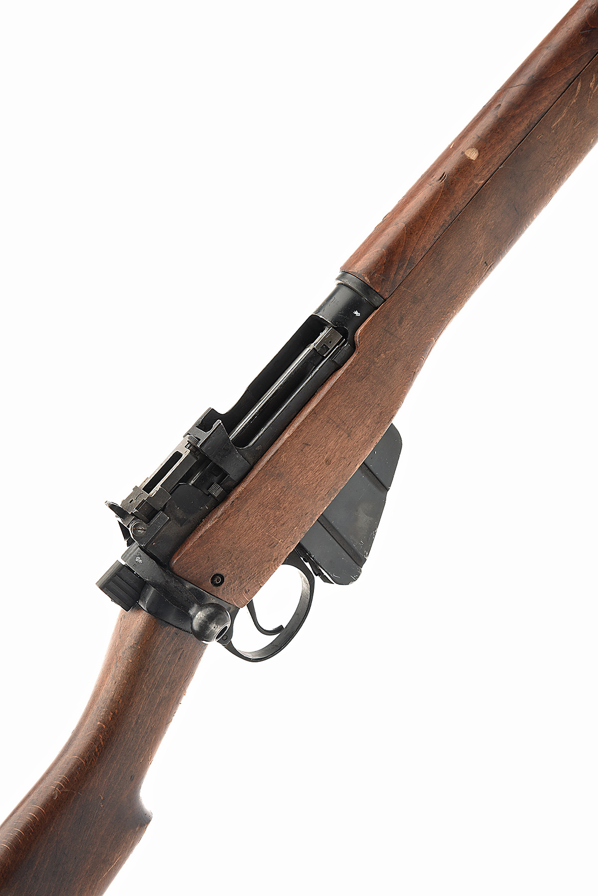 ** LEE ENFIELD .303 'No. 4 MK2(F)' BOLT-MAGAZINE SERVICE RIFLE, serial no. PF118199, circa 1940, 25 1/8in. nitro barrel, ramp-mounted fore-sight with protectors, folding battle sight, manual safety, detachable box magazine, full-length stock, sling swivels, brass buttplate with trap door