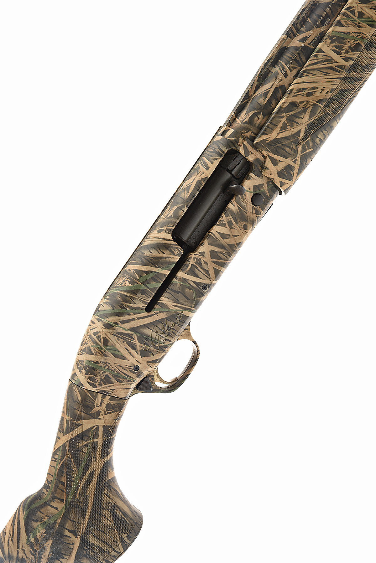BROWNING 12-BORE (3 1/2IN.) 'GOLD HUNTER 3 1/2' SEMI-AUTO SHOTGUN, serial no. 113MY21605, for 2002, 28in. nitro barrel with 6mm ventilated matt top-rib, 3 1/2in. chamber, multichoke (with spares), manual push-button safety, magazine cut-off switch, gold-washed trigger, the whole with Mossy Oak 'Shadow grass' camouflage-effect finish, 14 1/2in. pistolgrip stock including 1in. ventilated rubber recoil pad, sling eyes, weight 8lb. 4oz., in its universal case