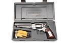 A CASED MODERN .45 PERCUSSION REVOLVER SIGNED RUGER, MODEL 'OLD ARMY STAINLESS TARGET', serial no. 145-88377, with 7 1/2in. barrel, solid frame, plain cylinder and factory smooth wood grips, in its maker's abs plastic case with accessories