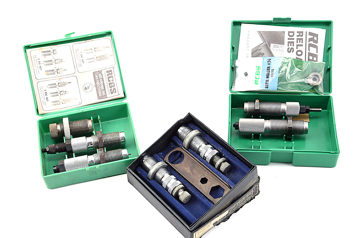 A COLLECTION OF THREE SETS OF RIFLE RELOADING DIES,
