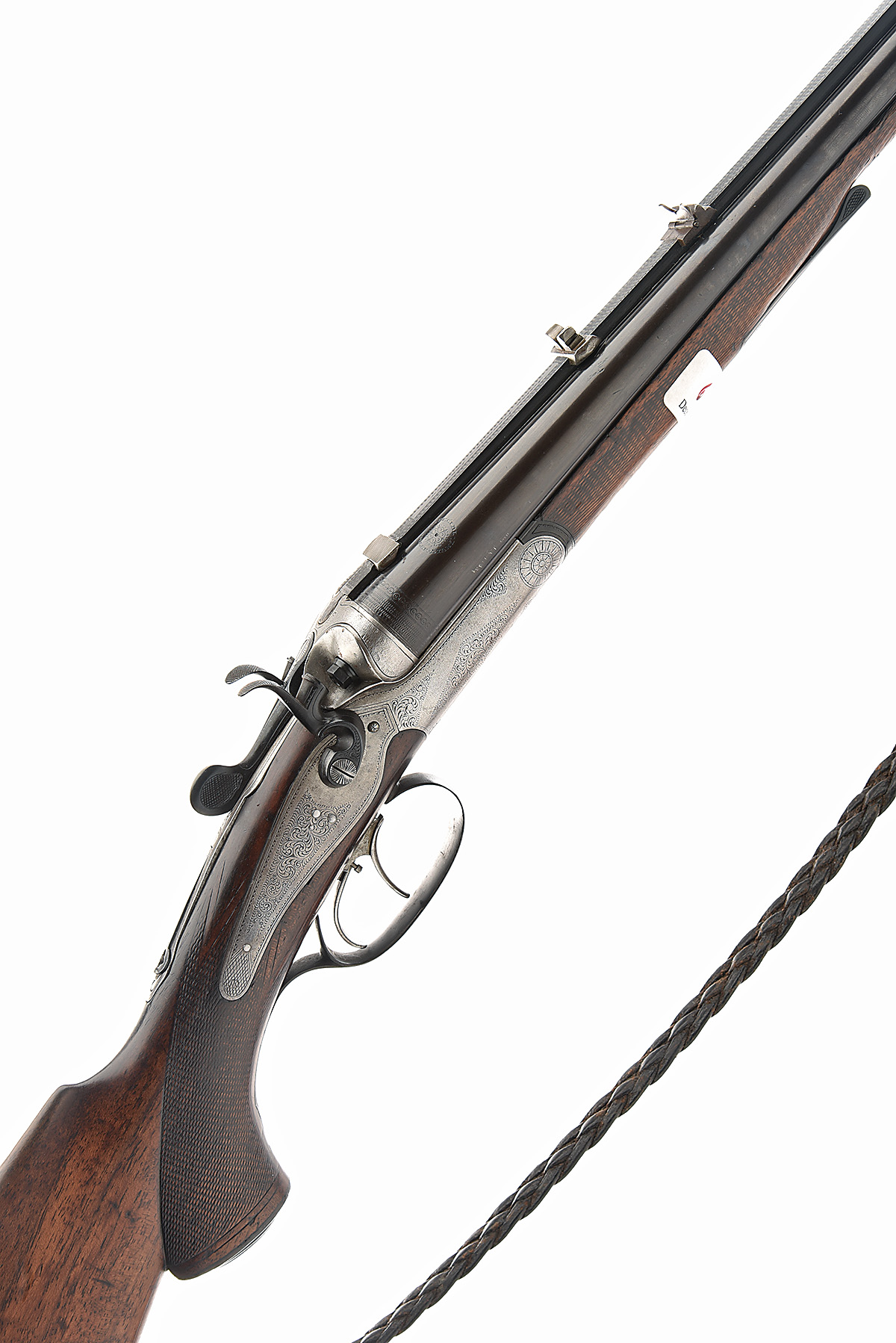 STEFAN PERKONIG (FERLACH) 16-BORE / .410 (SMOOTHBORED) TOPLEVER HAMMER RIFLE, serial no. 1890, circa 1890, 27 1/4in. nitro reproved barrels (in 1989), matt rib with open sights and scope mount bases, 2 1/2in. chambers, bored approx. full choke (16-bore), treble-grip action with carved percussion fences, rebounding locks, flip-up peep sight to the wrist, set front trigger, border and partial scroll engraving, brushed finish, 13 1/2in. pistolgrip stock (cracked at hand) with cheekpiece, weight 6lb. 11oz.