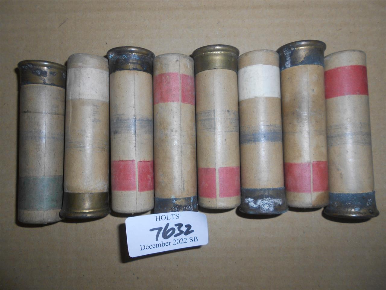 8 ELEY LONDON 4 BORE FLARES, RED WHITE & GREEN FOR COLLECTORS, 4in. PAPER CASES ROLL TURNOVER CLOSURE, (c) 1914 A  suitable RFD certificate, or, Sec 7 FAC is required to purchase this LOT