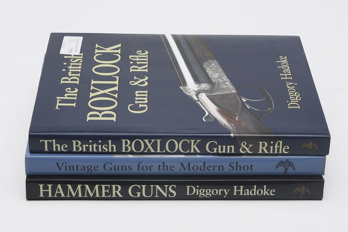 THREE SIGNED DIGGORY HADOKE BOOKS, 'The British box lock gun & rifle, Hammer guns, Vintage guns for the modern shot, These three books are all signed by the author'