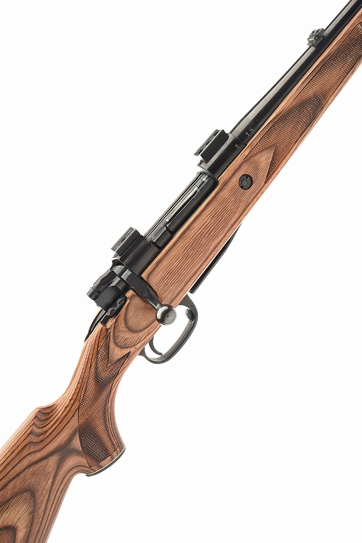MIDLAND GUN CO. .243 W BOLT-MAGAZINE SPORTING RIFLE, serial no. 30809, 22in. nitro barrel, threaded for sound moderator, fore-sight missing, folding leaf rear-sight, scope rail, manual safety, detachable magazine, laminated pistolgrip stock with rubber recoil pad and cheekpiece, sling eyes