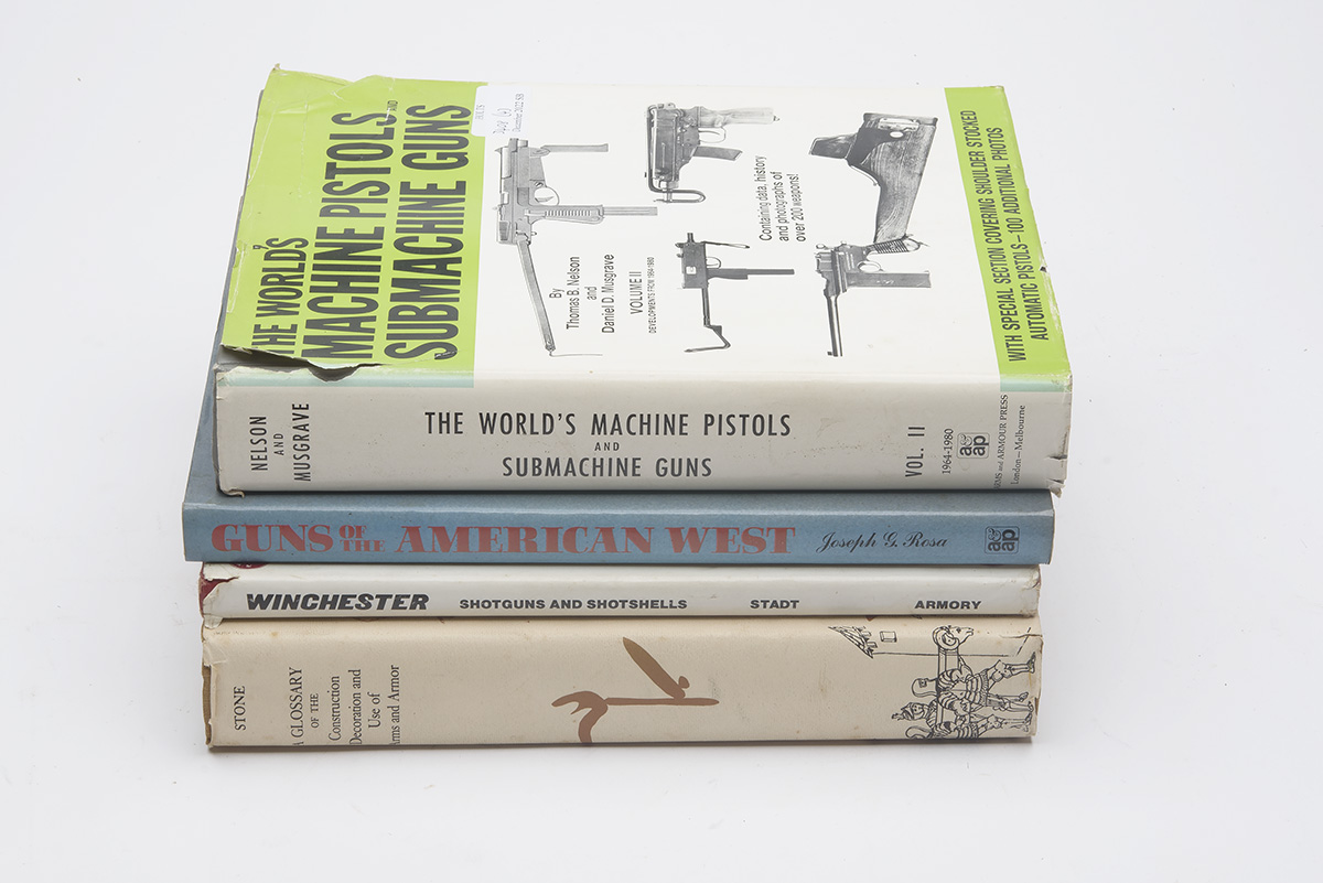 'The world's machine pistols & submachine guns volume 2 by Thomas b. nelson & Daniel d. Musgrave, A glossary of the construction, decoration and use of arms and armour by George Cameron stone, Winchester shotguns and shotshells by Ronald w. Stadt, Guns of the American west by joseph g. rosa'