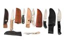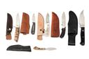 SIX ASSORTED SMALL SHEATH KNIVES OF VARIOUS SIZES AND STYLES, varied blade lengths and shapes, various grips, all with leather sheaths