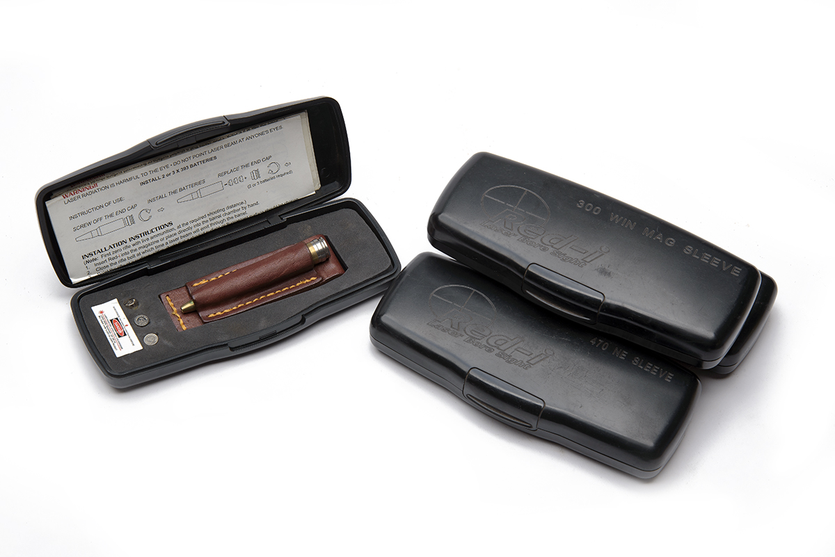 A COLLECTION OF FOUR RED-i LASER BORE-SIGHTS, all case, 2 x .300 H&H mag. 1 x 9.3x74R, 1 x .470 NE
