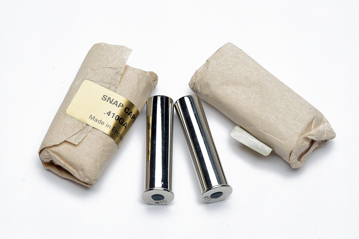 THREE PAIRS OF UNUSED NICKEL-PLATED .410 SNAP-CAPS