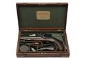 A SUPERB CASED .55 PERCUSSION DOUBLE-BARRELLED TRAVELLING PISTOL BY BLAKE, CIRCA 1840, no visible serial number,