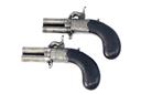 A CASED PAIR OF 80-BORE PERCUSSION TURN-OVER POCKET PISTOLS BY COLLINS OF LONDON CIRCA 1840, no visible serial numbers,