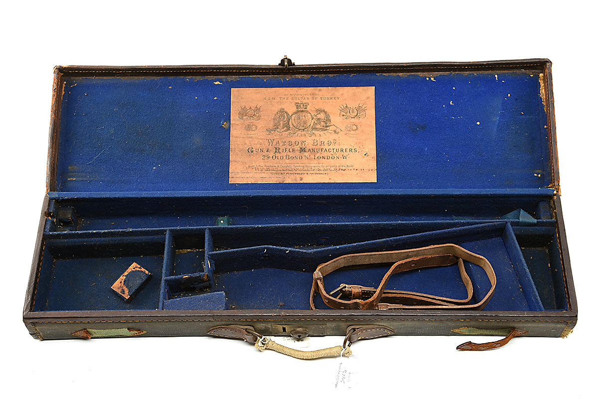A WATSON BROTHERS CANVAS AND LEATHER SINGLE GUNCASE,
